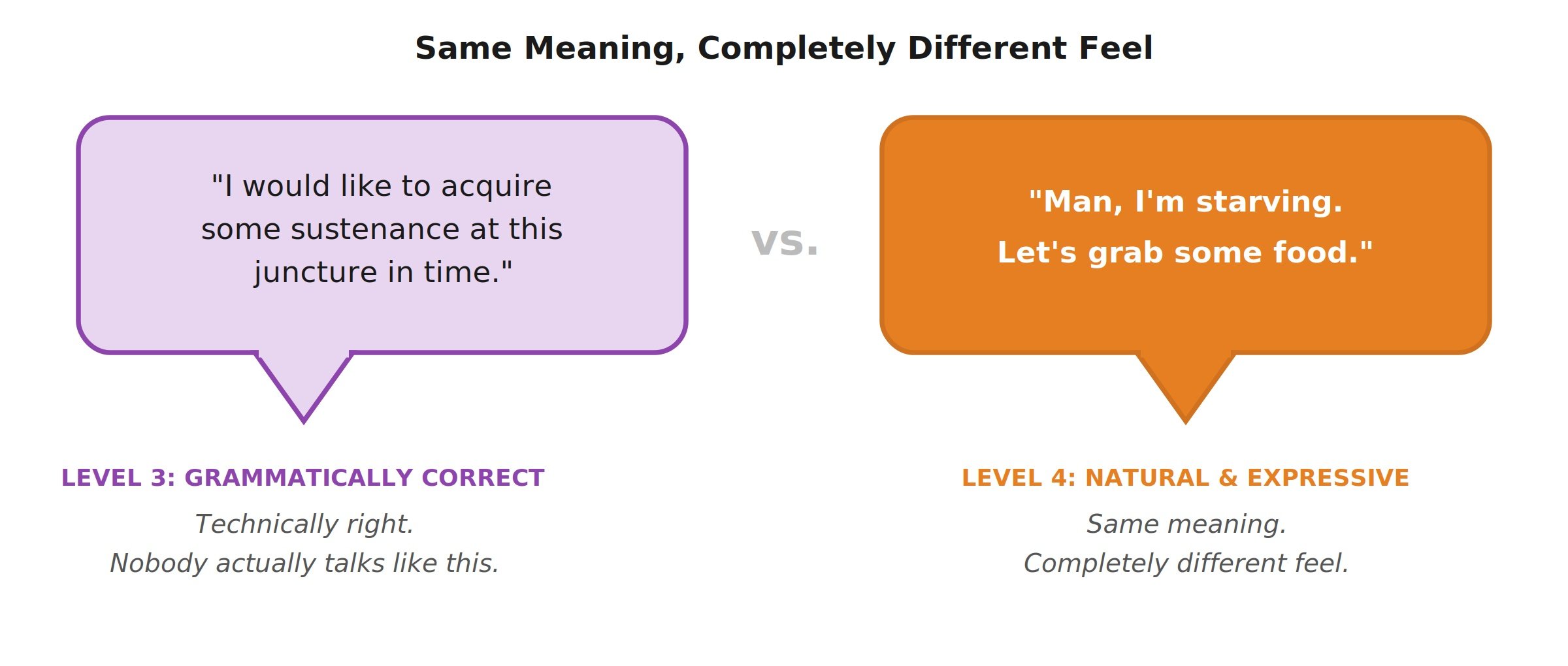 You can build grammatically correct sentences all day long. Subject, verb, object. The structure is right. But the result is stiff, mechanical, and lifeless.
